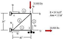 All joints are pins (can rotate freely); all members have circular cross-sectional area, and are made of steel (E=200 GPa, v=0.3 and p=7860 kg/m3).