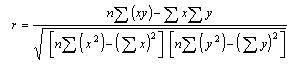Given a set of data with n data points, the slope, y-intercept and correlation coefficient, r, can be determined using the following: