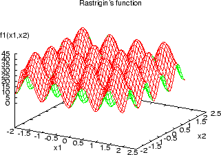 which is a multimodal function with lots of hills and valleys. Its minimum value is 0 and is located at the origin.